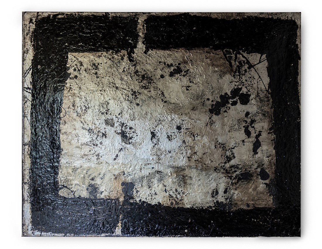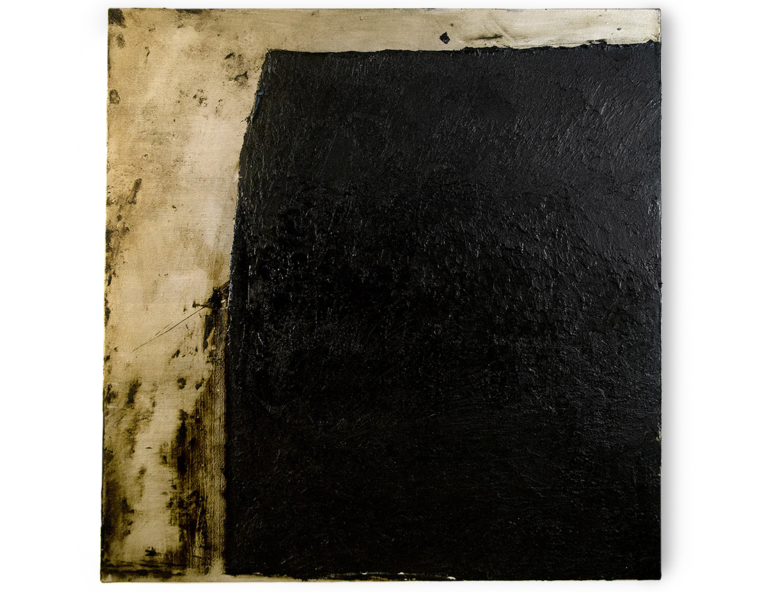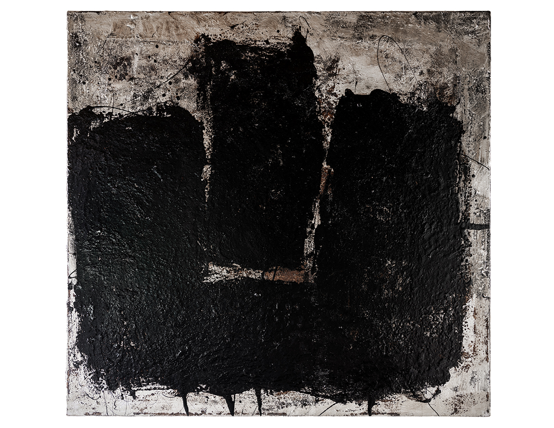 Untitled #1223 - tar and metal paint on canvas - 110 x 112cms