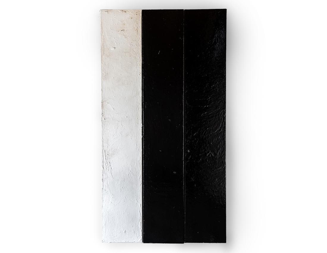 Blank white side panels 2025 tar and metal paint on canvas - 239 x 200cms