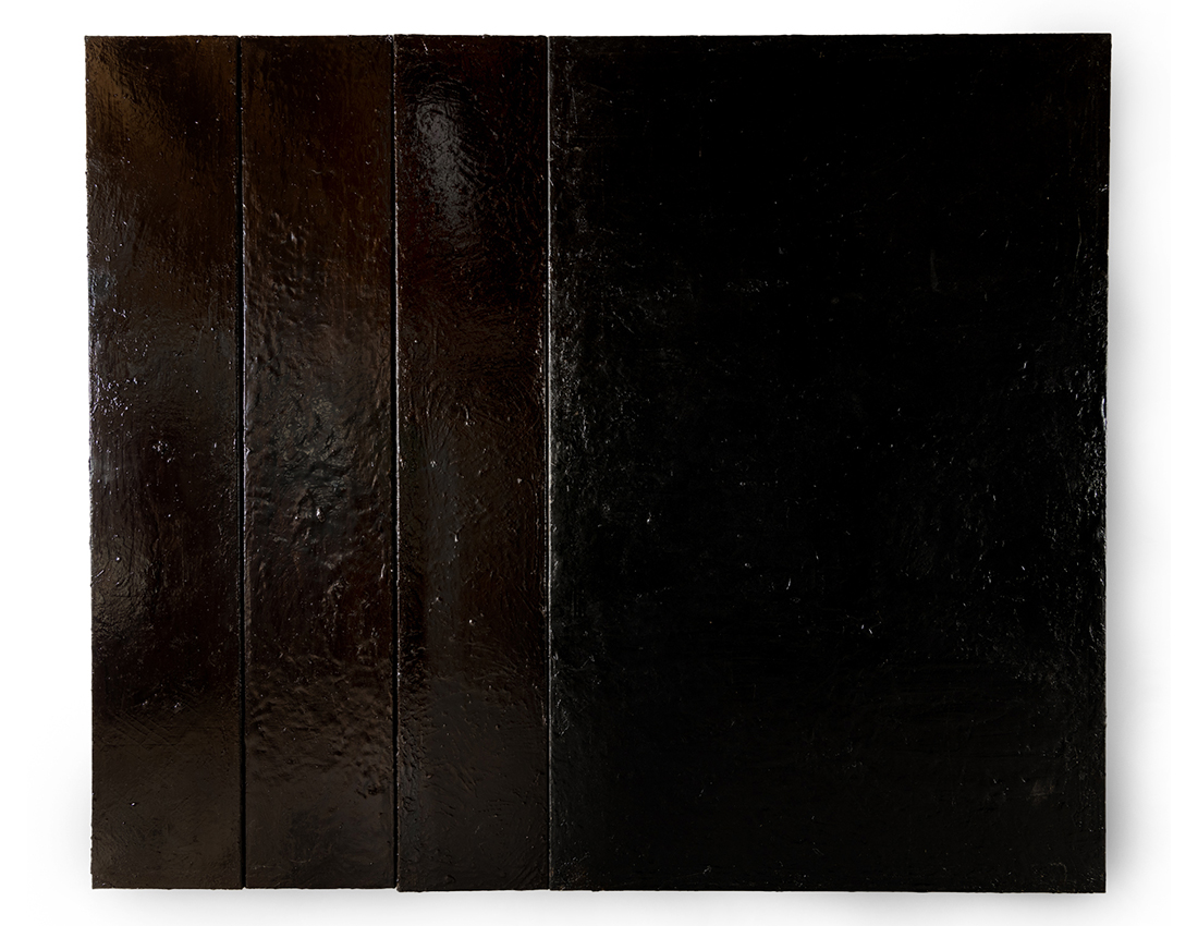 Black Mass 730 - tar and metal paint on canvas - 200 x 130cms