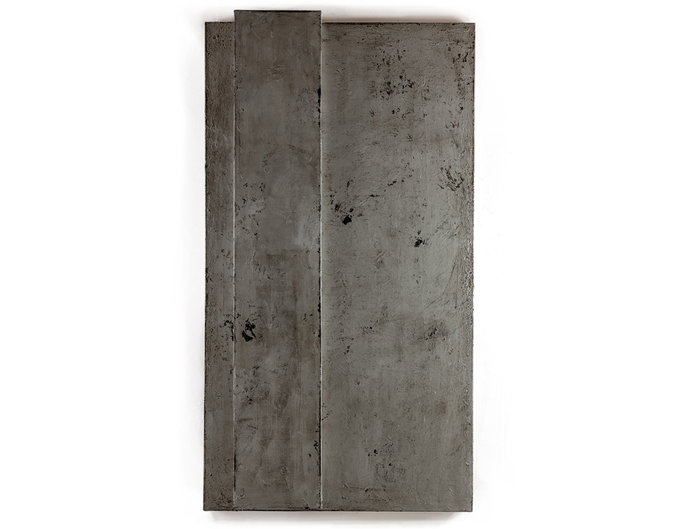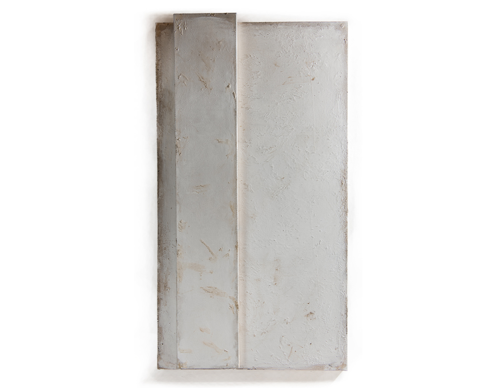 Silver Singular painting 2025 Tar and Metal pint on canvas - 200 x 110cm