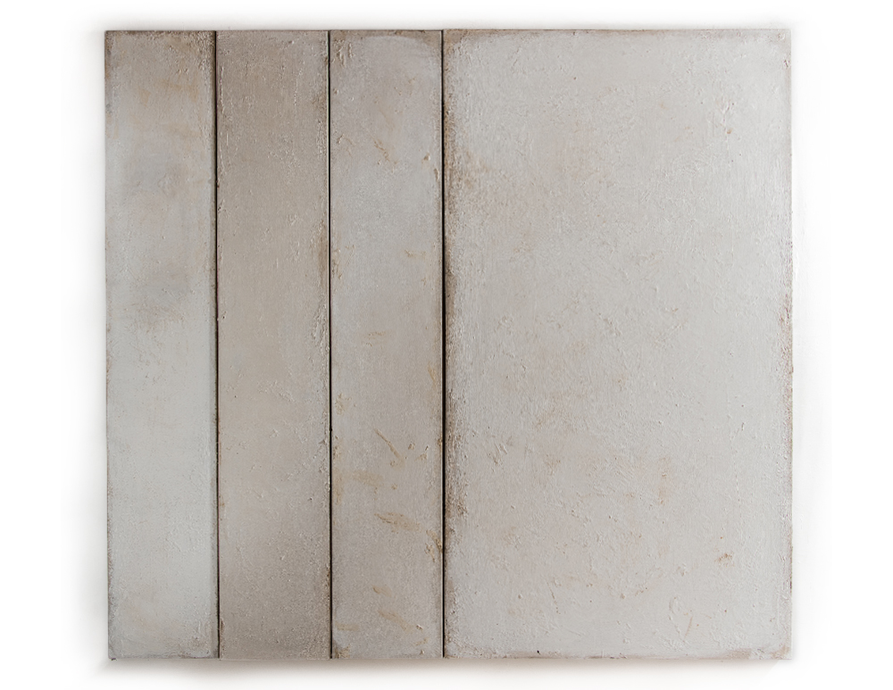 Blank white with panels 2025 tar and metal paint on canvas - 200 x 160 cms