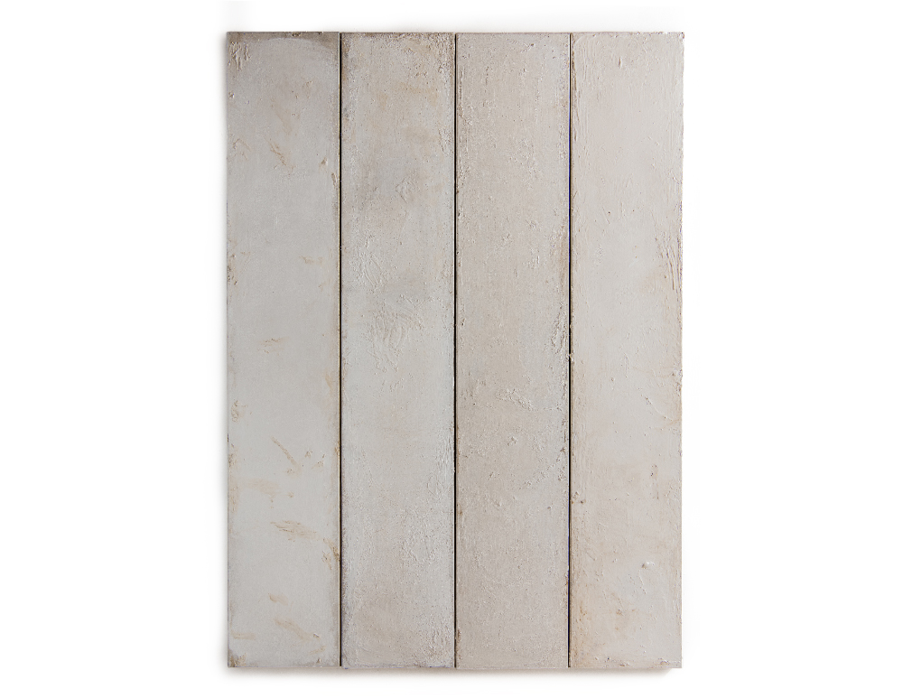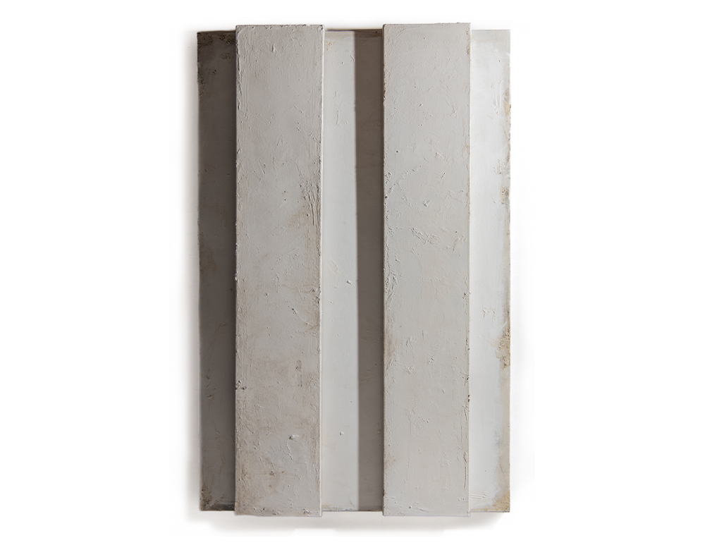Blank white solitary 2025 tar and metal paint on canvas - 200 x 130 cms
