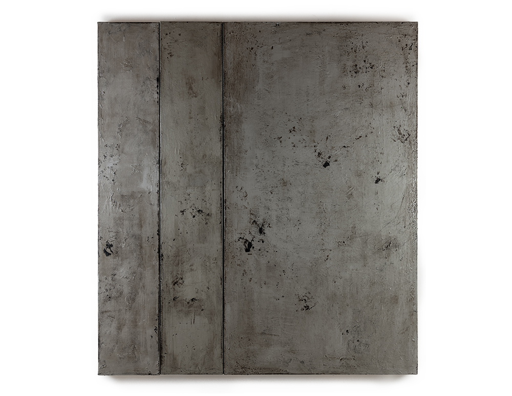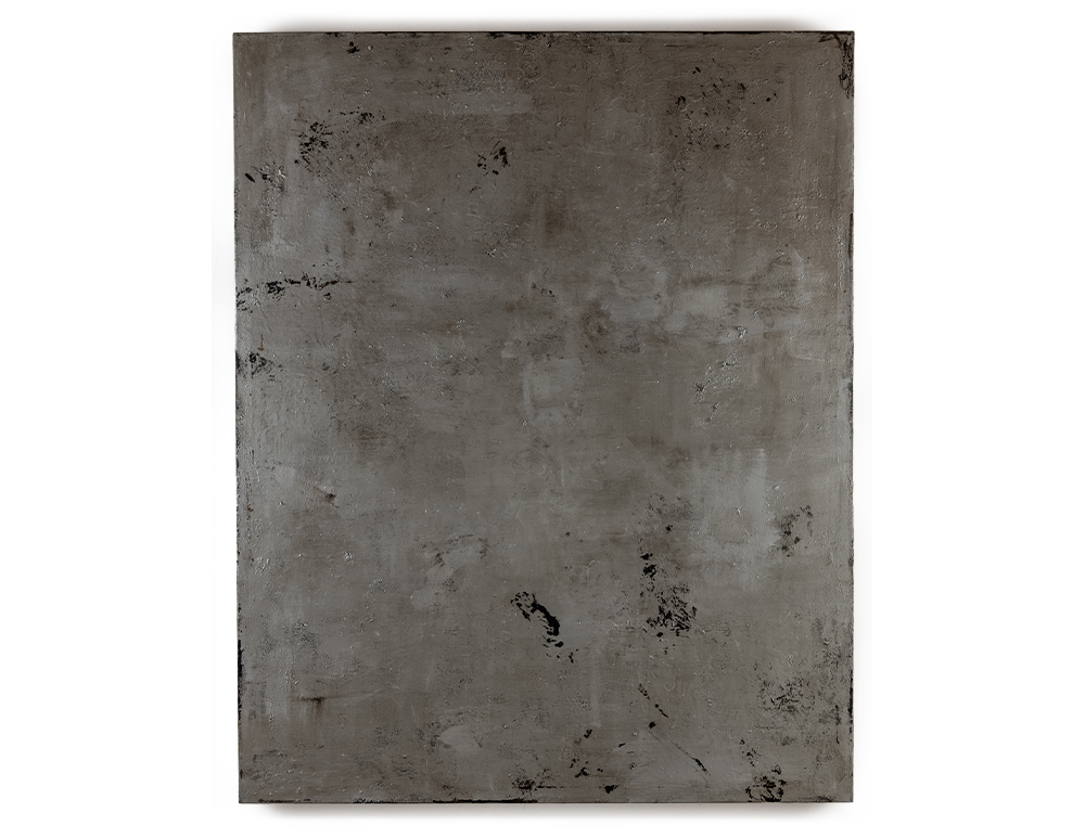 Single silver 2025 tar and metal paint on canvas - 200 x 160 cms